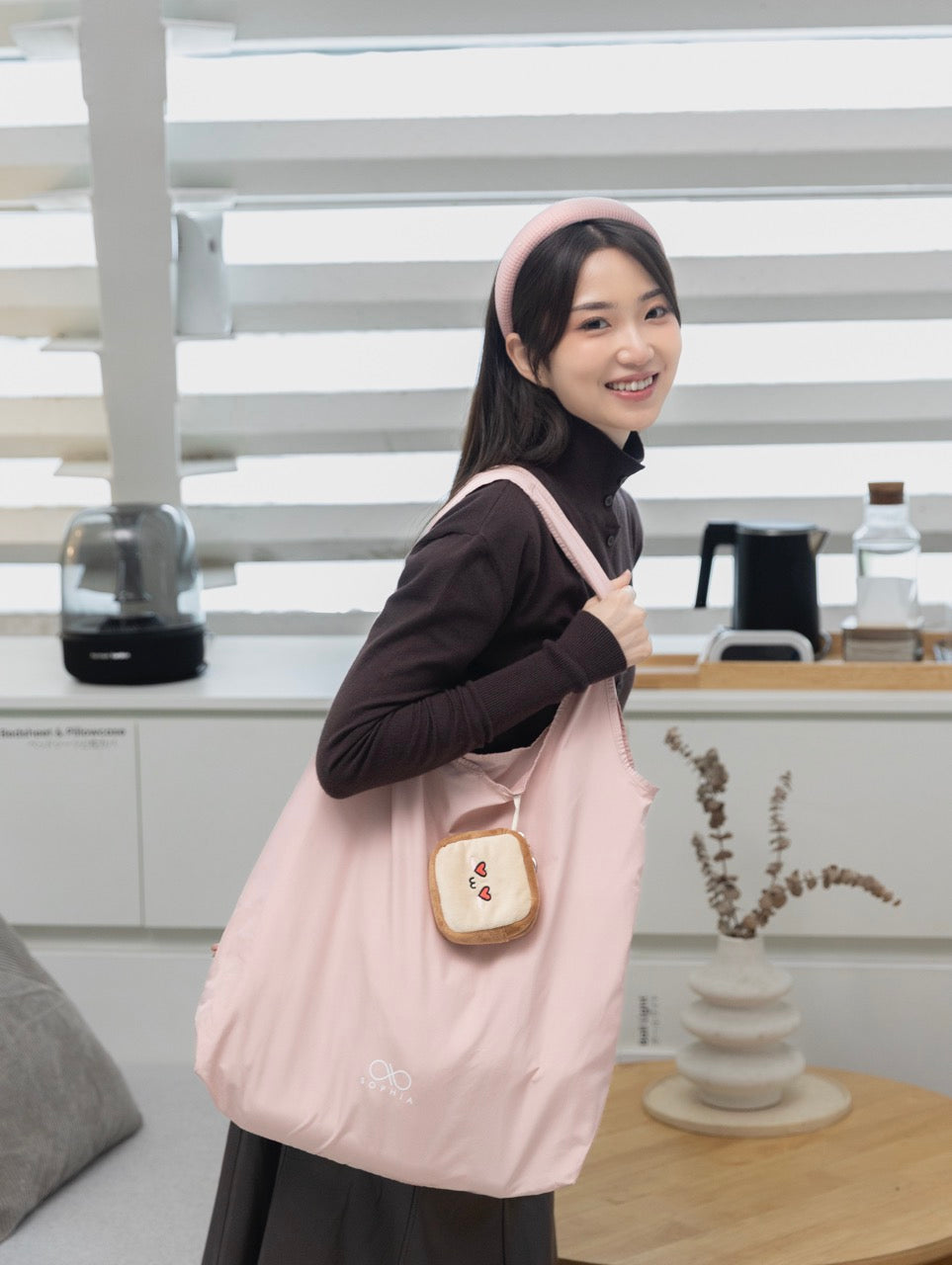 This reusable tote bag comes folded inside an adorable toast-shaped zip pouch that clips right onto your bag or keys for on-the-go convenience. Compact, lightweight, and irresistibly cute, each Toastlet comes in one of five collectible designs — Happy, Cheeky, Innocent, Sleepy , and a secret surprise — each with its own matching bag colour.